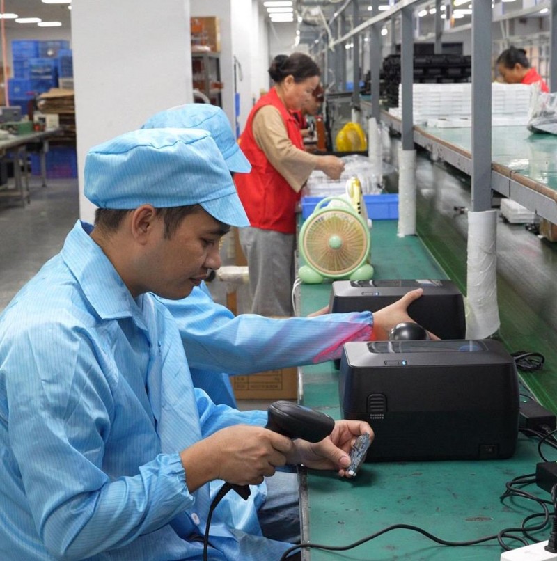 针对这一行业痛点,驰腾基于其X1 Pro热转印标签机和高精度扫描设备,开发出了一套完整的离线扫码解决方案。该方案重新定义了产线标签管理流程:收到主板后,工人首先扫描主板二维码,立即打印出对应的SN号标签并粘贴到主板;随后扫描主板标识码,系统自动匹配并打印出对应的铭牌;最后在组装环节完成铭牌的精准粘贴。